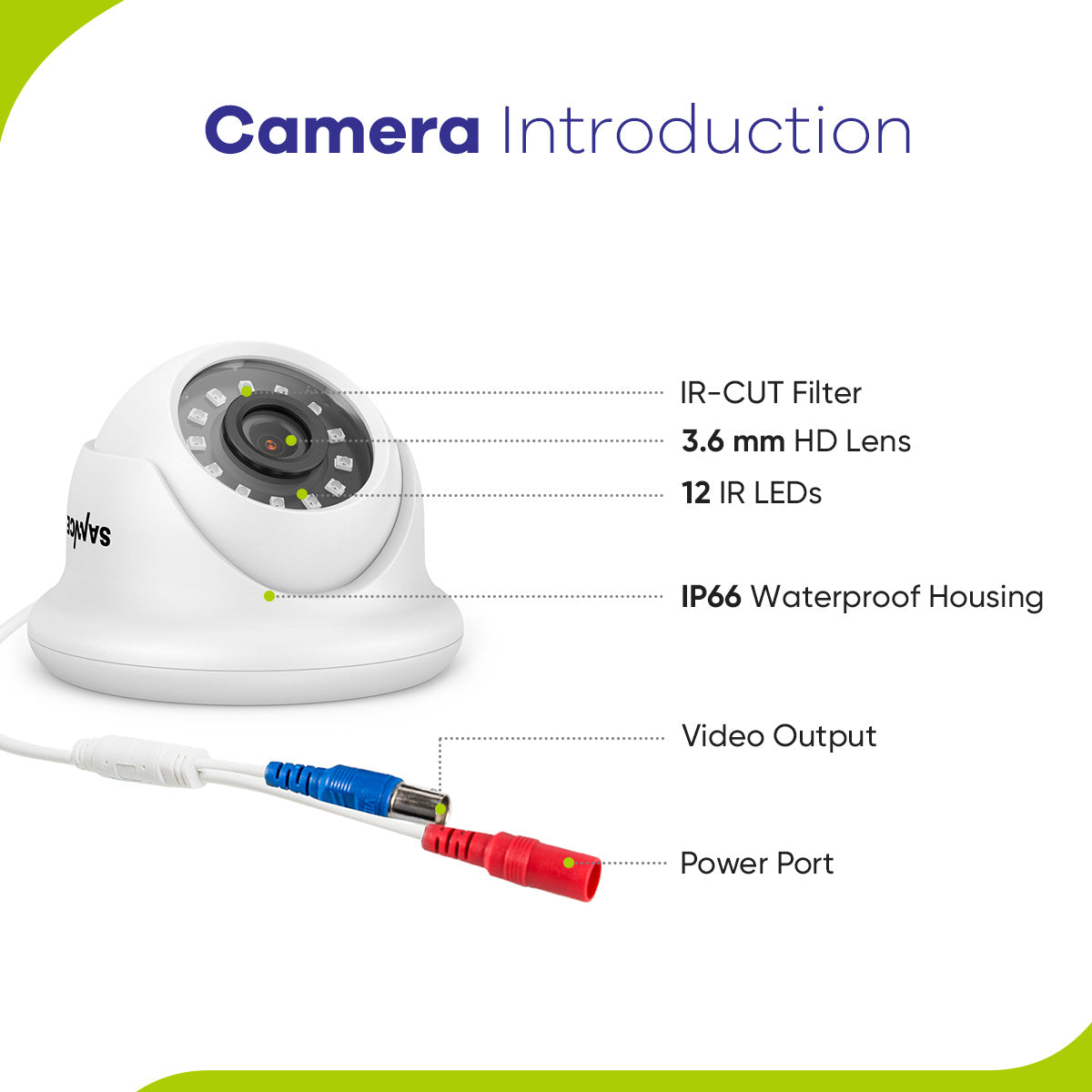 IP66 waterproof rating allows the weather & corrosion-resistant wired camera to be durable enough to use outside & inside. Just install the outdoor wired camera at your home, office, factory, warehouse, garage, anywhere you like, to get 24/7/365 monitoring.