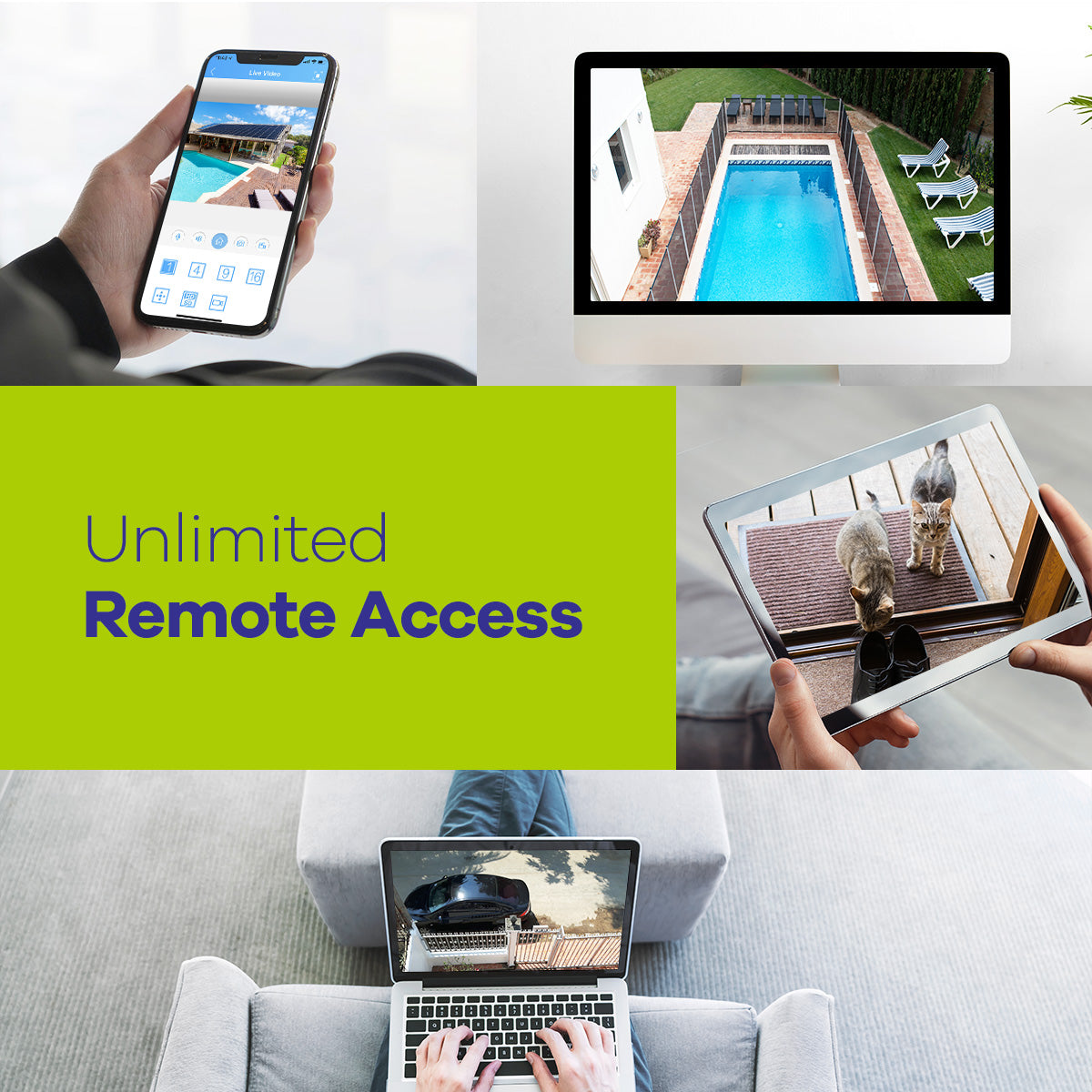 Enjoy unlimited remote control via free Sannce Vision App or software on your computers, browsers, phones or tablets. You can get motion-triggered alerts via app pushes or email alerts whenever unusual motions are detected. Never miss an important clip!
