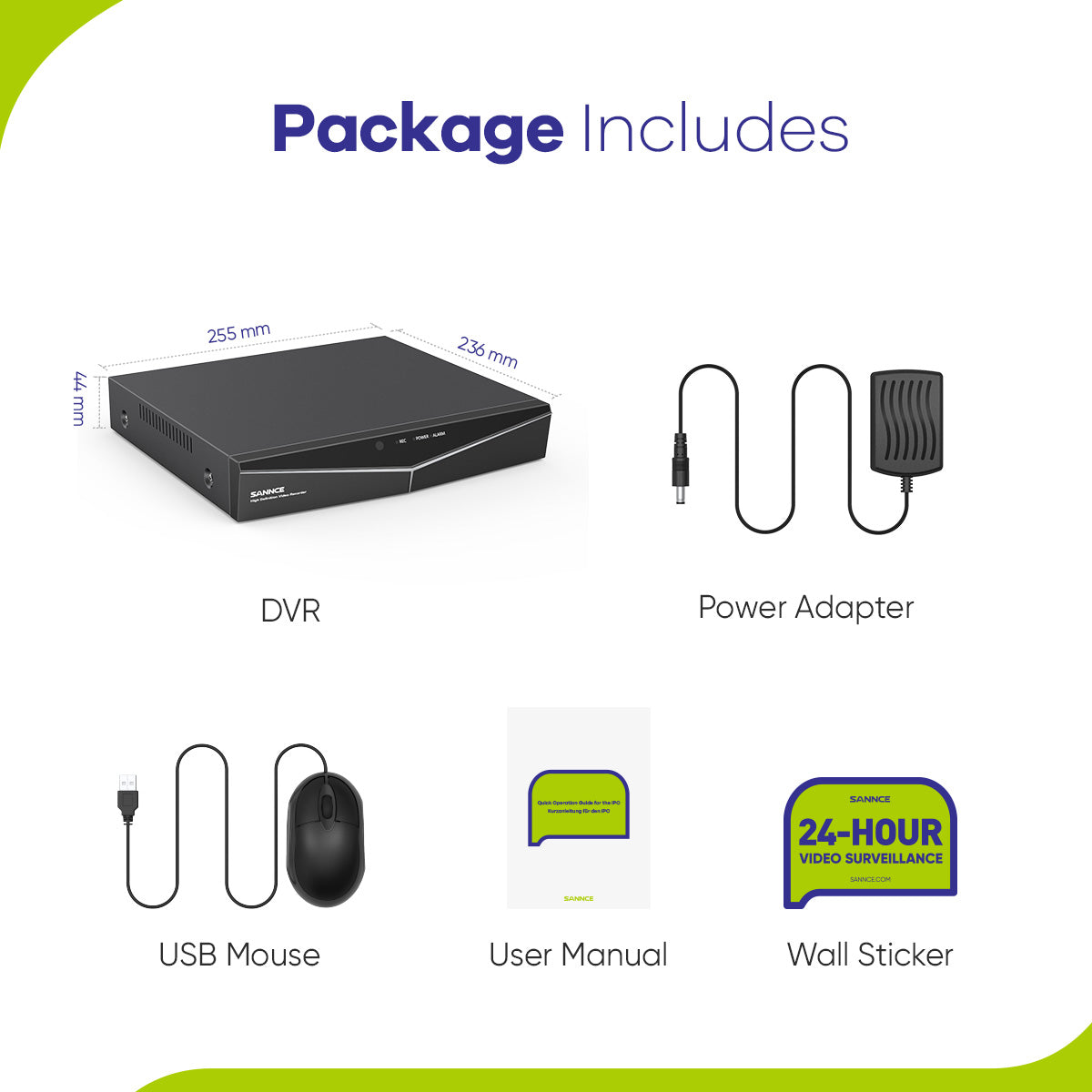 The DVR supports up to 1080p HDMI & VGA output so that you can connect the DVR to a TV or a monitor to get a local live view. Besides, it works seamlessly with 1080p analog security cameras, providing 1080p Lite input to identify any detail you need.