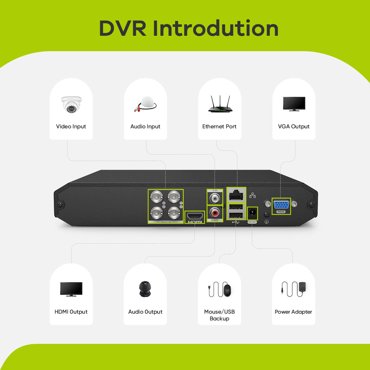 The DVR supports up to 1080p HDMI & VGA output so that you can connect the DVR to a TV or a monitor to get local live view. Besides, it works seamlessly with 1080p analog security cameras, providing 1080p Lite input to identify any detail you need.